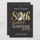 Elegante programa de Fiestas sorpresivos de cumpleaños número 80. Un diseño elegante con texto claro y fácil de leer, asegurando que todos los detalles importantes se transmitan sin esfuerzo. La adición de falsos acentos de Relieve metalizado en un dorado deslumbrante sobre un fondo de negro crea un efecto visual llamativo, añadiendo un toque de lujo al conjunto. Con su estética moderna y su encanto intemporal, esta invitación prepara el escenario para una celebración memorable, dejando a sus seres queridos emocionados y ansiosos por anticipar las sorpresas que esperan. Elija este diseño para hacer una declaración elegante y crear una experiencia inolvidable para sus huéspedes.