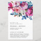 Moderno Programa de Boda floral con peonías y rosas en rosa audaz y vibrante con brotes de vegetación en tonos verde azulados y azules. Estos programas de boda brillantes en colores de tono joya son excelentes para un boda de verano y están impresos en hojas de papel para una opción económica.