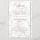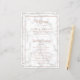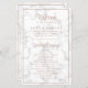 Moderno y elegante programa de bodas con detalles en un falso oro rosa, rodeado por un borde, sobre un fondo de mármol gris y blanco. Los encabezados están en una fuente de script elegante. Añade tus eventos de ceremonia al frente y tu fiesta de boda al fondo. Esta moda y su diseño elegante son ideales para una celebración en invierno. Estos programas de boda baratos se imprimen en hojas de papel para una opción asequible.