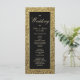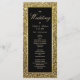 Este elegante programa de bodas presenta un diseño moderno y lujoso con acentos purpurinas en moda en negro y oro. Con un sencillo guión de caligrafía, combina la sofisticación con un toque de glamour, lo que lo convierte en un recuerdo impresionante para su día especial.