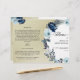 Elegante programa de quinceañera azul con hermosas flores de acuarela pintadas a mano en una variedad de tonos azules con detalles dorados. Uso de detalles de caligrafía moderna. Personalice el programa en ambos lados, agregando cualquier detalle o mensaje que desee. También disponible en español. NOTA IMPORTANTE: este programa llegará plano y requiere doblarse por la mitad para armarlo. Se recomienda el valor predeterminado del programa. Para un doblez limpio, es posible que desee utilizar una herramienta de doblez de hueso económica, disponible en la mayoría de las tiendas de manualidades. Invitación coordinada disponible. Parte de nuestra colección "Tema Elegante Azul Celeste y Dorado" con una variedad de productos coordinados disponibles.