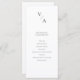 Moderno programa de bodas en blanco y negro con diseño de tipografía de monograma minimalista.