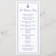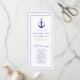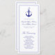 Personalizar esta elegante y elegante tarjeta de rack monograma blanco del programa de bodas náuticas. Diseño moderno y nítido con texto azul e imagen de anclaje. Todos los elementos son flexibles y se pueden mover, cambiar de tamaño o quitar.