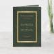 Moderna y simple tipografía minimalista verde esmeralda oscuro y una falsa ceremonia plegada de oro y plantilla de programa de boda fiesta en un estilo vintage de antaño de angustiado fondo. +++++++++++ Fácil de personalizar con el texto en la parte delantera, trasera e interior!