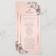 Elegante programa de bodas floridas de color rosa y dorado con rosas rosas rosas y verde. Elementos coincidentes disponibles. Personaliza fácilmente en línea.