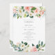 Este programa de bodas cuenta con elegantes flores de color agua rosa y blanco con una combinación de fuentes sencilla y atemporal. Es el servicio perfecto para la pareja romántica clásica, pero puede ser modificado para adaptarse a cualquier evento que tenga en mente.