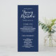 Programas De Bodas Elegantes. Texto blanco sobre fondo azul marino. Diseño de Elke Clarke © Disponible en www.zazzle.com/monogramgallery. Personalizar con su color de fondo y toda su información personal para crear un programa sencillo pero sofisticado que sus acomodadores pueden entregar cuando sus invitados entran a la iglesia o están sentados donde tendrá lugar la ceremonia. Ayuda a la gente a seguir durante la ceremonia, pero también actúa como un gran placer para los invitados. Puede utilizar los campos de la plantilla para rellenar la información sugerida sobre su fiesta de boda y el orden de servicio y agradecerle el mensaje o seleccionar "personalizar" y usar el menú de edición para cambiar el espaciado del texto, las fuentes, los colores a medida que desee crear sus propios programas de boda.