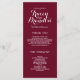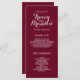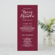 Programas De Bodas Elegantes. Texto blanco sobre fondo borgoñoso. Diseño de Elke Clarke © Disponible en www.zazzle.com/monogramgallery. Personalizar con su color de fondo y toda su información personal para crear un programa sencillo pero sofisticado que sus acomodadores pueden entregar cuando sus invitados entran a la iglesia o están sentados donde tendrá lugar la ceremonia. Ayuda a la gente a seguir durante la ceremonia, pero también actúa como un gran placer para los invitados. Puede utilizar los campos de la plantilla para rellenar la información sugerida sobre su fiesta de boda y el orden de servicio y agradecerle el mensaje o seleccionar "personalizar" y usar el menú de edición para cambiar el espaciado del texto, las fuentes, los colores a medida que desee crear sus propios programas de boda.