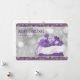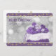 Elegante tarjeta de Navidad morada y dorada con una bolsa llena de regalos de Navidades y cartón. Personaliza fácilmente esta tarjeta de vacaciones morada con el nombre de la familia y el texto.