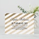 Personalizar esta hermosa y elegante invitación de cumpleaños con texto negro sobre franjas diagonales purpurinas de imitación de oro. Cambie toda la información con la suya. Este diseño también se ve bien con otros estilos de esquina que también se pueden cambiar. Coincidir Guardar la postal de fecha está en un vínculo a continuación: