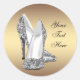 Elegantes pegatinas de zapatos altos de tacón de oro purpurina plateado. Puede añadir el texto de su elección simplemente eligiendo el botón "Personalizar".