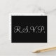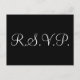 Este diseño de postal de R.S.V.P limpio incluye el mensaje "R.S.V.P." en el frente. También incluye un formulario RSVP de personalizable en la parte posterior, junto con una dirección de personalizable a la que se enviarían las tarjetas RSVP completadas. Tarjetas RSVP como esta podrían ser usadas para averiguar quién asistirá a una ducha de bebé, un fiesta de cena, una fiesta de cumpleaños o alguna otra celebración.