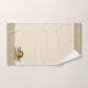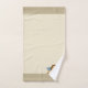 Elegante Rafael Cherub sobre el conjunto de toallas de baño beige.