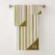 El cuarto de baño está decorado con toallas de personalizado. Elegante Banda Marrón Dorada Banda Moderna Monogramada Toalla De Baño. Gran idea de regalo.