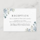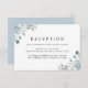 Tarjeta de recepción de boda floral elegante que incluye los detalles de su recepción con ramos de rosas azules polvorientas y blancas, hortensias, hojas de eucalipto exuberantes y vegetación. Las tarjetas de recepción de boda floral polvorienta son perfectas para su boda de primavera o verano. Diseñada para coordinar con nuestra colección de boda Elegant Dusty Floral.