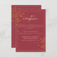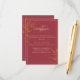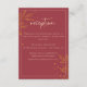 Esta moderna, simplista y elegante tarjeta de recepción de bodas burdeos presenta hermosas hojas de oro y una combinación de escritura y letras simplistas. Puede personalizar este diseño con sus propios detalles de la recepción nupcial.