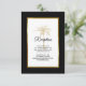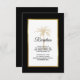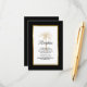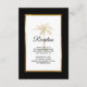Proporcione a sus huéspedes todos los detalles de la recepción de su boda con esta elegante tarjeta de gabinete con escritura moderna, texto negro que incluye una artística palmera dorada y marco de oro metálico en la parte delantera de la tarjeta. Un fondo negro está en la parte delantera y trasera.