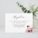 Invite a sus invitados a unirse a usted después de la ceremonia del boda con este elegante carrito de inserción de "Recepción". Diseño con cautivadora recepción acuática con pasteles, velas, tazas y manchas de agua delicadas en una hermosa mezcla de burdeos, ruidosos, rosa, rosa polvoriento, bayas, malva y beige. Recepción en elegante caligrafía escrita a mano moderna. Parte de nuestra colección "Romance Floral" con una variedad de productos de coordinación disponibles. Visita la colección completa haciendo clic en el enlace "Otros productos de esta colección".