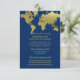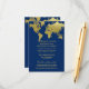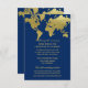 La tarjeta de información de boda incluye un diseño de borde de mapa mundial. Elegante color azul marino y Relieve metalizado de color falso dorado.
