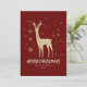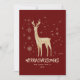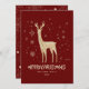 Este elegante y moderno diseño no fotográfico Festive Red and Gold Reindeer Merry Christmas cuenta con un reno rodeado por un elegante conjunto de copos de nieve y estrellas. La parte trasera de la invitación es un patrón de los mismos ilustraciones de Navidades. Se puede personalizar el color de fondo y el texto. Este diseño es perfecto para una tarjeta de Feliz Navidad. Ver toda la colección coincidente!