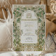 Invite a sus invitados a celebrar su día especial con esta exquisita invitación a la boda Art Nouveau. Con un intrincado diseño floral con elegantes acentos de Relieve metalizado dorado, esta invitación se inspira en la belleza intemporal del arte Art Nouveau. La parte delantera de la tarjeta muestra ilustraciones botánicos detallados en tonos verdes, marfil y oro, creando un aspecto armonioso y sofisticado. La parte posterior sigue la temática con un refinado monograma y motivos florales, lo que la convierte en una perfecta mezcla de elegancia clásica y lujo moderno. Ideal para una boda romántica y elegante, esta invitación marca el tono para una celebración inolvidable.