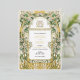Invite a sus invitados a celebrar su día especial con esta exquisita invitación a la boda Art Nouveau. Con un intrincado diseño floral con elegantes acentos de Relieve metalizado dorado, esta invitación se inspira en la belleza intemporal del arte Art Nouveau. La parte delantera de la tarjeta muestra ilustraciones botánicos detallados en tonos verdes, marfil y oro, creando un aspecto armonioso y sofisticado. La parte posterior sigue la temática con un refinado monograma y motivos florales, lo que la convierte en una perfecta mezcla de elegancia clásica y lujo moderno. Ideal para una boda romántica y elegante, esta invitación marca el tono para una celebración inolvidable.