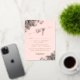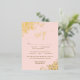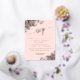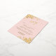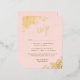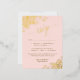 Estas magníficas tarjetas RSVP para bodas incluyen elegantes letras de guión con adornos de Relieve metalizado dorado en las esquinas de un fondo rosa claro y rosa. Los clientes pueden rellenar un formulario de personalizable en el que se indica si van a asistir o no, el número de clientes y la elección de las comidas. Hay espacio para introducir una URL de página web para que sus invitados puedan responder en línea si lo prefieren.