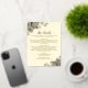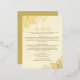 Estas preciosas tarjetas de detalle boda presentan un elegante título de guión con delicados cambios o florecientes en los extremos de las letras impresas en Relieve metalizado de oro real. En las esquinas hay rizos y remolinos delicados, todo ello en un fondo de marfil o crema. El centro de la tarjeta es un amplio espacio de texto donde puedes proporcionar cualquier información que tus clientes puedan necesitar, incluyendo información sobre reservas de hotel, rsvp, recepción, registro, sitio web, o cualquier información que necesites.
