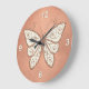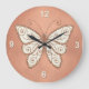 Reloj de pared de aspecto metálico rosa de moda, con gráficos de marfil y purpurina de oro rosa con aspecto de mariposa. Los números de las casas de color marfil marcan las 12, 3, 6 y 9 horas. Personalizar para agregar el texto que desee. Bonita idea de regalo.