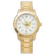 Elegante reloj de pulsera adornado con corazones dorados y suaves detalles florales en cálidos tonos amarillos y beige, mezcla perfecta de encanto y feminidad.