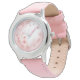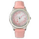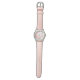 Un reloj rosa femenino y de diseño adornado con suaves detalles florales, el toque perfecto de belleza para cualquier tipo de vestimenta.