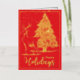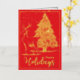 Celebre la temporada con esta elegante tarjeta de vacaciones que presenta un reno gracioso y un árbol de Navidad acentuado en oro. Puesto en un fondo rojo atrevido con nevada y una frontera refinada, captura el calor y la alegría de las vacaciones. Dentro, un saludo sincero en escritura graciosa desea paz, alegría y momentos preciados a lo largo de la temporada y el Año Nuevo. Una opción atemporal para compartir la alegría de las vacaciones.
