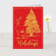 Elegante Reno Rojo y Tarjeta de Navidad del Árbol