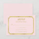 Estas elegantes tarjetas de respuesta de boda presentan un marco de falso oro elegante y un fondo rosa pálido chic.