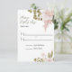 Elegante tarjeta RSVP de respuesta de Boda rosa Rubor BOHO diseñada con flores rosa suave sobre un fondo blanco. El texto incluye: Su respuesta por fecha y el espacio para que el invitado complete sus nombres. El lado inverso es un fondo rosa de color verde suave. Para personalizar, simplemente inserte su respuesta por fecha en nuestra plantilla sencilla, reemplazando el texto de ejemplo. No olvide ver toda la colección de Bodas rosa Elegant BOHO Rubor para tarjetas y accesorios a juego.