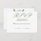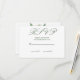 Una hermosa y formal tarjeta de respuesta de boda floral con un ramo de flores. Una idea sencilla para que tus invitados puedan responder fácilmente a tus invitaciones de boda con un rápido tic. Esta tarjeta postal de respuesta completa un diseño floral de suite de boda de Just Fine Designs. Blanco, verdes y rosados son los colores del diseño. Diseño de boda formal moderno y elegante.
