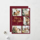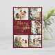 ¡Envíe alegría de vacaciones con una elegante tarjeta de Collage de fotos de Navidad Red & Gold Merry! Con un guión retro de moda en tonos dorados y un elegante fondo negro, esta tarjeta muestra maravillosamente las fotos familiares favoritas. Es la combinación perfecta de elegancia clásica y vibraciones modernas, lo que lo convierte en un recuerdo eterno para los seres queridos. Personaliza con fotos y un nombre de familia para crear un saludo de vacaciones único!