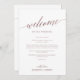 Estas elegantes cartas de bienvenida e itinerarios rosa boda de oro son perfectas para un simple boda. El diseño rosa oscuro presenta una tarjeta minimalista decorada con una tipografía romántica y caprichosa de imitación rosa de Relieve metalizado dorado. La parte delantera de la tarjeta incluye una carta de bienvenida y la parte trasera de la tarjeta incluye el itinerario del boda. Estas notas son perfectas para bodas de destino y bolsos de bienvenida para huéspedes del hotel. Nota: Este diseño no tiene Relieve metalizado de oro rosa real. Es un gráfico de alta calidad hecho para parecer un Relieve metalizado de oro rosa.
