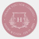Rosa escudo de monograma oro gracias pegatina. Este sello para sobres es sencillo, intemporal y cuenta con un monograma de boda floral. Está personalizado en tipografía elegante.