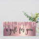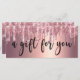 Este magnífico diseño de certificado de regalo presenta una textura metálica purpurina de goteo de oro de color rosa y cobre y un elegante tipo de letra caligráfica.