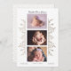 Anuncie el nacimiento de su hermoso recién nacido con este magnífico y elegante anuncio de Rosa de oro blanco 3 foto de nacimiento. La parte delantera de la tarjeta contiene tres imágenes horizontales centradas de arriba a abajo, bordeadas a cada lado con un delicado diseño floral y verde de rosa dorado que brilla como el Relieve metalizado de oro real, pero que en realidad es un diseño digital. Una hermosa y moderna tipografía de escritura con letras a mano muestra el nombre del bebé por encima de las imágenes, y un delicado y moderno tipo de moda muestra la fecha de nacimiento del bebé, peso y longitud en la parte inferior en moda de negro sobre blanco. La parte posterior de la tarjeta presenta un delicado patrón de hojas de oro rosa. Imágenes de los marcadores de posición cortesía de la fotografía de Anastasia en Rochester, NY. Puedes ver sus hermosas fotos profesionales en www.anastasiasphotography.blogspot.com. Más diseños y estilos disponibles en nuestra tienda en www.zazzle.com/anastasia_designs.