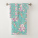 Convierte tu cuarto de baño en un oasis personal con una toalla perfecta para secarte. Este popular y atractivo juego de toallas de 3 piezas presenta una flor de Adenio. El Rosa Desierto Adenium es una planta robusta que florece en verano abundantemente en zonas tropicales cálidas de sol. Justo para los picnics de verano y las salidas a la playa. El ilustracion cuenta con Adenium en una divertida y fresca paleta de color verde azulado. Visita mi tienda para encontrar artículos para decoraciones caseras y otras obras de arte. Si te gusta esta obra de arte, puedes visitar mi tienda home_Decour_gallery para un tema de decoración similar. Enlace: https://www.zazzle.com/store/home_decor_gallery