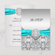Bonito diamante, RSVP de boda azul turquesa y plata.