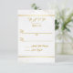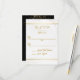 Una elegante tarjeta RSVP de color negro y oro diseñada con texto de color dorado y acentos para complementar tu paquete Invitación a la Boda. El texto principal incluye la fecha de respuesta y el espacio para que los invitados inserten sus nombres. El reverso está diseñado con acentos de confeti dorado sobre un fondo negro. Para personalizar, simplemente inserte su respuesta por fecha en nuestra plantilla, reemplazando el texto de ejemplo. No deje de ver la colección de Bodas Elegant Black y Gold para tarjetas y accesorios a juego.