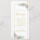 Esta elegante tarjeta de recepción con flores 4x9 de agradecimiento es perfecta para tu recepción de bodas botánicas de primavera rosa y boho. El diseño presenta un marco de Relieve metalizado dorado acompañado por un sencillo rosa de champán color melocotón, un verde eucalipto verde de sabio minimalista y una flor silvestre de adormidera neutra y moderna. El diseño es de lujo, ideal para un verano clásico, elegante y delicado de moda, otoño o bodas de invierno. Por favor, siéntase libre de contactarnos con cualquier pregunta relacionada con el diseño del producto; ¡ánimo!