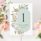 Ayude a sus huéspedes a encontrar su mesa con este número de tabla único. Diseño con elegante óvalo geométrico en verde salvia rodeado de magníficas acuarelas florales que recubren su número de mesa con los detalles del evento. También disponible con oval en verde beige. Tarjetas de doble cara. Disponibles cartas y menús de la gráfica de asientos coincidentes. ¡Tener todos los números de tabla en el mismo color o mezclarlos! Parte de nuestra colección "Earthy Blooms in Sage Green and Terracotta" con una variedad de productos de coordinación disponibles.