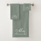 Aumente la experiencia de la ducha nupcial con nuestro juego de toallas de baño elegante Sage Green Mrs Bridal Shower Gift. Perfectas para los compromisos y futuras novias, estas lujosas toallas adornadas con elegante caligrafía le dan un toque de sofisticación a cualquier casa. Personalizarlos con el apellido para un regalo memorable que celebra el amor y nuevos comienzos.