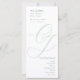 Elegante Sage Green Script Programa de matrimonio moderno con dos iniciales con efecto grabado en relieve