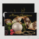 Adecuado para felicitaciones navideñas corporativas o personales, este elegante diseño dorado, negro y plateado hace una declaración de un año exitoso, junto con esperanzas y deseos para el Año Nuevo. La parte frontal está decorada con un adorno plateado brillante, anidado en bayas rojas, un ramo de hoja perenne y hebras de cuentas doradas. Detrás del arreglo navideño de Navidad brilla una cinta de encaje dorada y plateada. El texto, "Feliz Navidad" está en un rico color dorado y fuente elegante. Hemos mantenido la elegancia del negro y el dorado en todo el diseño, utilizando el negro como color de fondo en todas las superficies y texto dorado. Hemos incluido texto de marcador de posición para que pueda enviar la felicitación que usted o su empresa prefieran. Personalice o personalice como desee. Cada palabra y cada línea se pueden utilizar tal cual, editar a su gusto o eliminar por completo. Sugerimos utilizar un sobre coordinado para mantener su ambiente lujoso. Si está agregando un logotipo de empresa, recuerde eliminar el marcador de posición redondo simple que hemos agregado. ¡Felices fiestas!