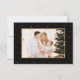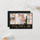 Moderno Black and Gold Elegant Calligraphy Script 5 tarjetas de Navidades de Collage de fotos. Esta cédula festiva, minimalista, de cinco (5) fotos navideñas incluye un collage de fotos de bonito, tres doodles de pinos, texto de saludo de "Feliz Navidad" que está escrito en un tipo de letra con letras a mano en negro y oro. Al revés, el patrón de puntos nevados con una bonita foto familiar. Tarjeta de saludo de bonito para su familia y amigos en la temporada de vacaciones de invierno.